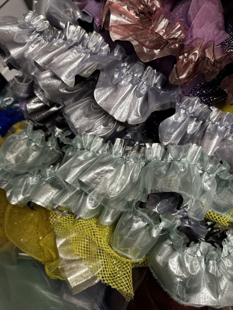 1番のポイントは、シルバー生地と、角度によって見え方が変わるオーガンジーを重ねたフリルをつけた事で、カラー1色だった衣装の見え方をガラリと変えました