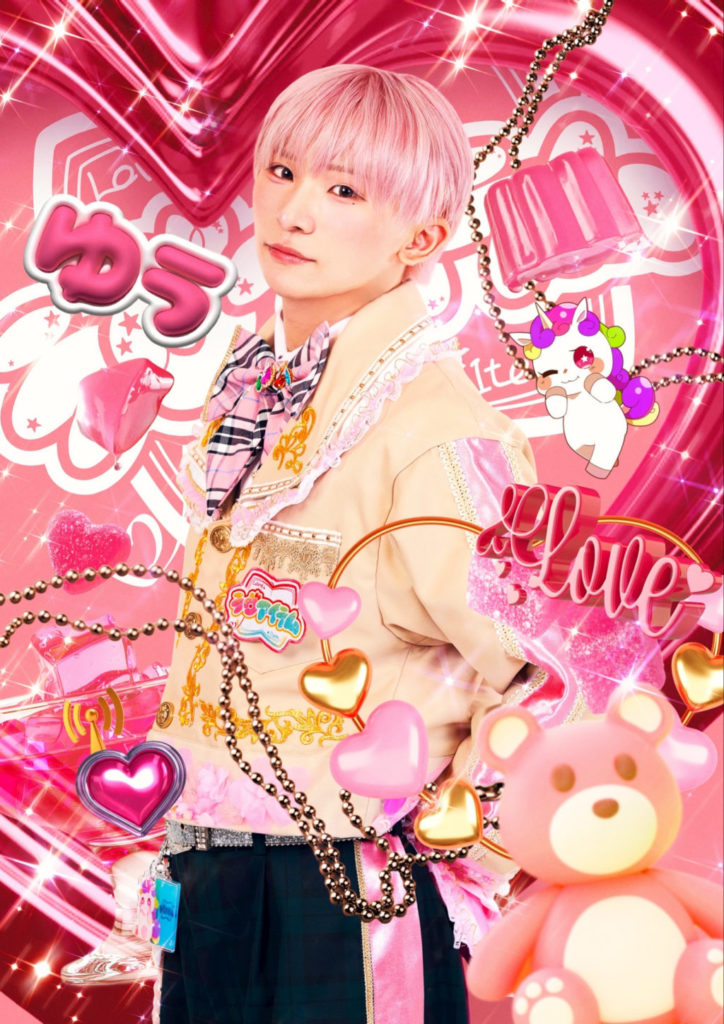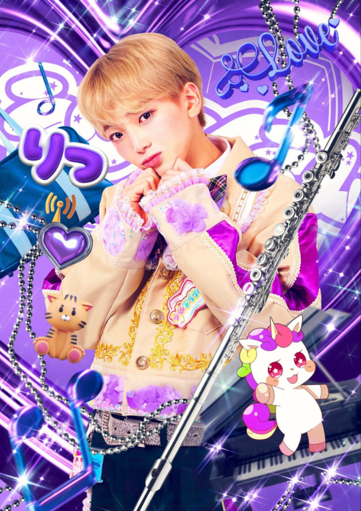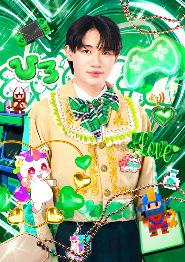 裾と袖口に、メンバーカラーのお花、ハート、キラキラ等のミックスパーツが動くたびに移動する、という面白いデザイン